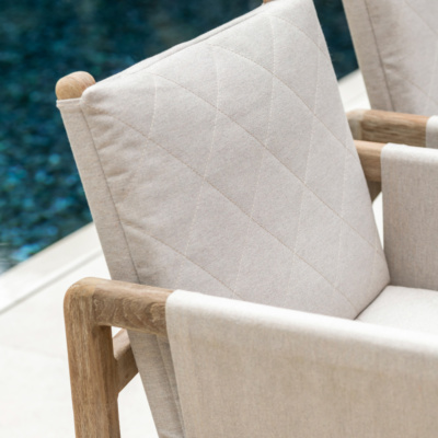 Fotel Easy Chair Carlo to doskonały wybór dla restauracji, kawiarni i hoteli, które pragną zapewnić swoim gościom eleganckie i komfortowe miejsce do wypoczynku na świeżym powietrzu. Wykonany z naturalnie szarego drewna tekowego oraz plecionki z liny, ten fotel łączy nowoczesny design z trwałością i wygodą.