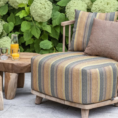 - Materiał: Naturalnie szare drewno tekowe, tkanina outdoorowa.