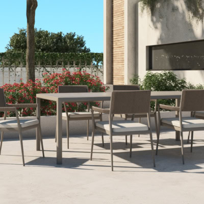 Kolekcja Curacao to propozycja dla tych, którzy cenią połączenie nowoczesnej formy z subtelnym akcentem rzemiosła. Krzesła z tej serii wyróżniają się eleganckim wykończeniem z plecionej liny oraz lekką, aluminiową konstrukcją odporną na warunki atmosferyczne.