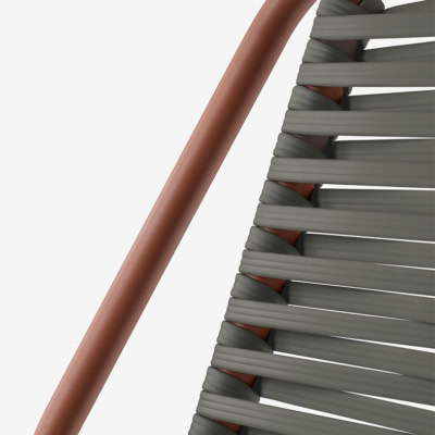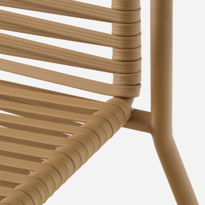 - Materiał: Malowana proszkowo stal, siedzisko i oparcie z wytrzymałego PVC o unikalnym splocie.