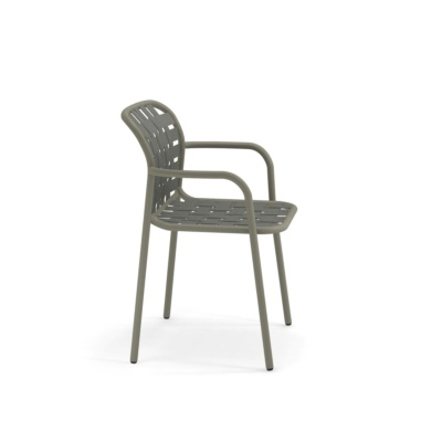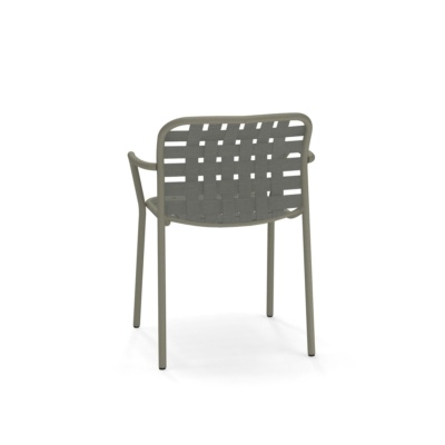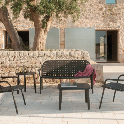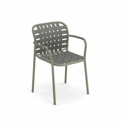 Tkane elastyczne paski, połączone w innowacyjny sposób z wyrafinowaną aluminiową ramą, dają życie kolekcji definiowanej przez wyjątkowy, eklektyczny styl i doskonały komfort, doskonale nadający się do użytku na zewnątrz. Yard to kompletna gama mebli, na którą składają się krzesło, fotel, stoły stałe, fotele relaksacyjne, stoliki kawowe różnej wielkości oraz leżak. Kolekcję uzupełniają stoliki o różnych rozmiarach, zarówno do aranżacji kontraktowych, jak i mieszkalnych.