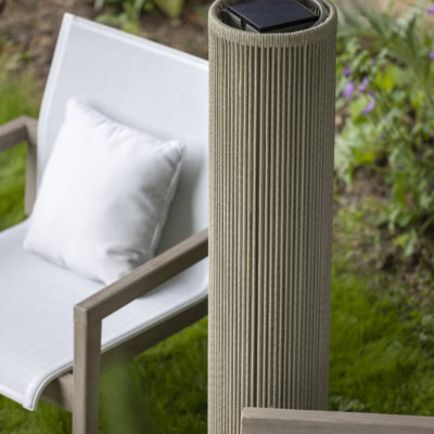 Les Jardins przedstawia swoją najnowszą propozycję na sezon 2024 – stojącą lampę solarną ROP&STRIP, która łączy w sobie różnorodne materiały, tworząc harmonijne połączenie nowoczesności z naturą. Została urozmaicona o elementy drewna tekowego, które przeszły proces kilkukrotnej impregnacji metodą Duratek, gwarantując wytrzymałość i atrakcyjny wygląd. Dodatkowo, aby lampy mogły działać stabilnie nawet podczas bardziej wietrznych dni, dodano podstawy granitowe, dyskretnie schowane pod aluminiową osłoną w kolorze lampy, zapewniając estetykę, ale także bezpieczeństwo użytkowania. Abażur wykonany z plecionej liny nie tylko dodaje elegancji, ale także tworzy delikatną grę świateł, tworząc przyjemny efekt kaskadowego oświetlenia. To połączenie wysokiej jakości materiałów i funkcjonalności sprawia, że lampa ROP&STRIP nie tylko oświetla przestrzeń, ale nadaje jej wyjątkowy charakter, tworząc atmosferę pełną ciepła i uroku.