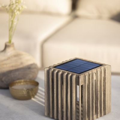 Verti TECKA 72 to kompaktowa, przenośna lampa solarna stołowa marki Les Jardins®, zaprojektowana z myślą o nastrojowym oświetleniu w strefach zewnętrznych i wewnętrznych. Minimalistyczna forma i naturalne wykończenie z drewna tekowego Duratek® sprawiają, że doskonale wpisuje się w nowoczesne aranżacje tarasów, ogrodów i wnętrz.