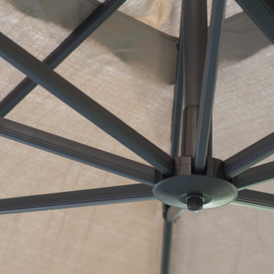 Boczne ramie dla lepszej lokalizacji: Ramie parasola Premium umieszczone jest na boku, co sprawia, że znalezienie idealnego miejsca dla parasola jest jeszcze łatwiejsze. To rozwiązanie daje Ci większą swobodę aranżacji przestrzeni.