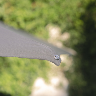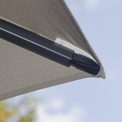 Aluminiowy stelaż: Solidny stelaż z aluminium gwarantuje stabilność i trwałość, umożliwiając jednocześnie łatwe przenoszenie i ustawienie parasola według potrzeb.