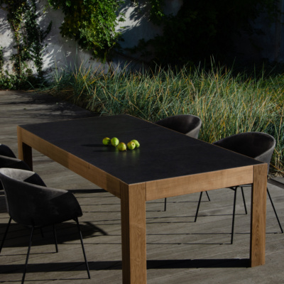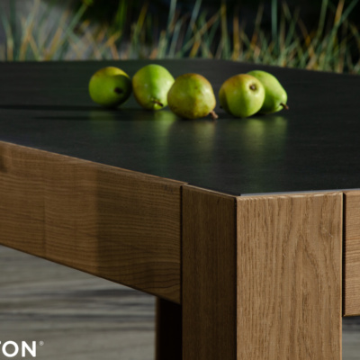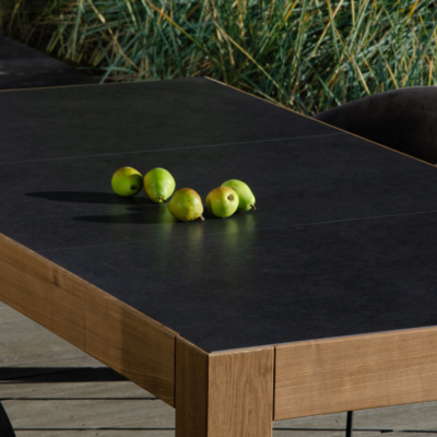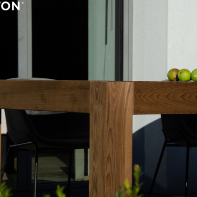 Efektowny i nowoczesny stół zewnętrzny Bruno marki Nooon.design, to wyjątkowe połączenie innowacyjnych materiałów, jakim są konstrukcja z Thermo Jesionu oraz blat z płyty Dekton, składające się na niebanalną i ponadczasową stylistykę tego mebla. Dzięki swojemu uniwersalnemu kształtowi i wymiarom (215 x 112 cm, wysokość 74 cm), stół Bruno świetnie komponuje się w większości przestrzeni, dodając niepowtarzalny urok otoczeniu.