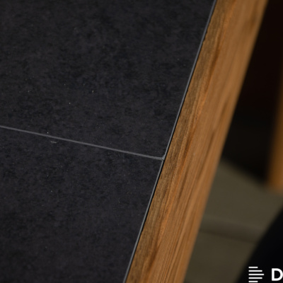 Nie mniej efektownym elementem tego mebla jest blat z płyty Dekton – zaawansowanego materiału powstałego z unikalnej mieszanki mineralnej poddanej procesowi TPS. Dekton cechuje się niezwykłą trwałością, odpornością na zmienne warunki atmosferyczne, odbarwienia, uderzenia i ścieranie. To materiał przyjazny dla środowiska, a dzięki różnorodnym wersjom kolorystycznym (takim jak Eter, Kovik czy Grafite) idealnie dopasowuje się do różnych aranżacji wnętrz.