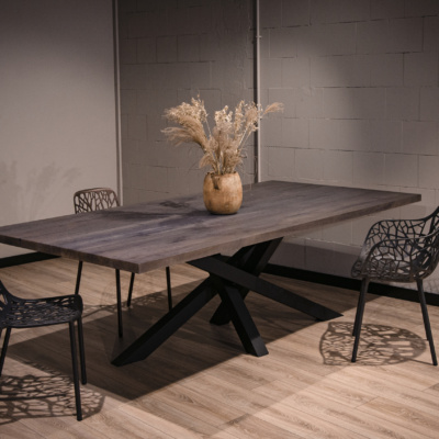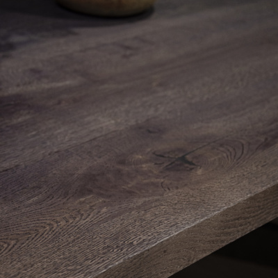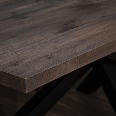 - Nowoczesny design – bejcowany na stylowy szary odcień blat i stalowa podstawa w głębokiej czerni doskonale wpisują się w aktualne trendy wnętrzarskie.