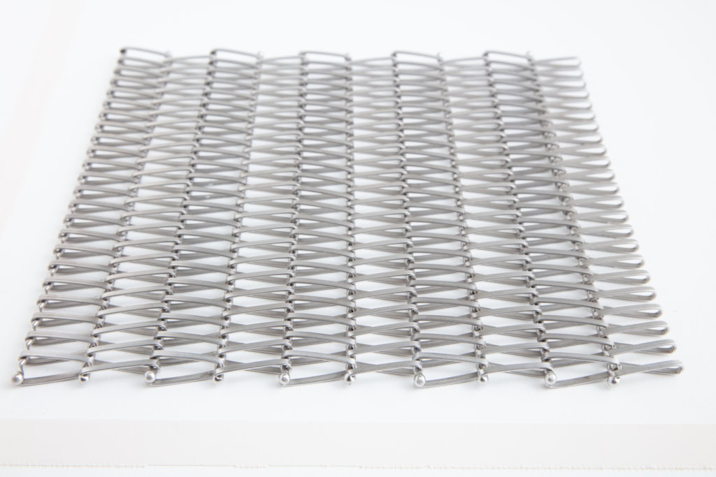 To uniwersalna tkanina o nowoczesnym wyglądzie, dostępna w wielu konfiguracjach i wersjach materiałowych – od lekkich, transparentnych struktur po masywne, konstrukcyjne panele. Występuje także w wariancie Flat Wire, w którym drut jest spłaszczony, co nadaje powierzchni delikatniejszy, bardziej płynny charakter.